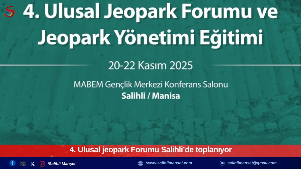 Türkiye’nin jeopark alanındaki en önemli buluşmalarından biri olan 4. Ulusal Jeopark Forumu ve Jeopark Yönetimi Eğitimi, 20–22 Kasım tarihlerinde Manisa Büyükşehir Belediyesi ev sahipliğinde düzenlenecek. Salihli MABEM Gençlik Merkezi’nde düzenlenecek etkinlik kapsamında ayrıca Küresel Kula-Salihli UNESCO Jeoparkı’na yönelik teknik bir gezi de gerçekleştirilecek.