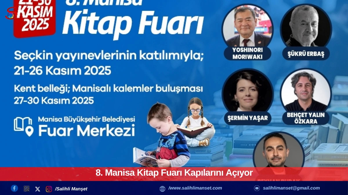 Manisa Büyükşehir Belediyesi ile TACT Fuarcılık işbirliğinde düzenlenen 8. Manisa Kitap Fuarı, 21 – 30 Kasım tarihleri arasında kitapseverlere kapılarını açacak. Fuar, binlerce kitabın yanı sıra; Yoshinori Moriwaki, Şükrü Erbaş ve Behçet Yalın Özkara gibi değerli isimleri ağırlayacak.