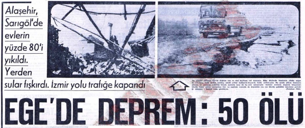 Depremin ardından gazete sayfalarının manşetlerinde, “ Alaşehir ve Sarıgöl’de evlerin yüzde 80’i yıkıldı, yer altından sular fışkırdı. İzmir yolu trafiğe kapandı, Tarihten bir miras kalan 800 yıllık Şeyh Sinan Camii bile yaşanan deprem sonrası adeta ortadan ikiye bölündü. Yine dönemin Başbakanı Süleyman Demirel bölgeye ziyarete geldiğinde, Her şeyi yeniden inşa edeceğiz” sözleriyle yerini almıştı.