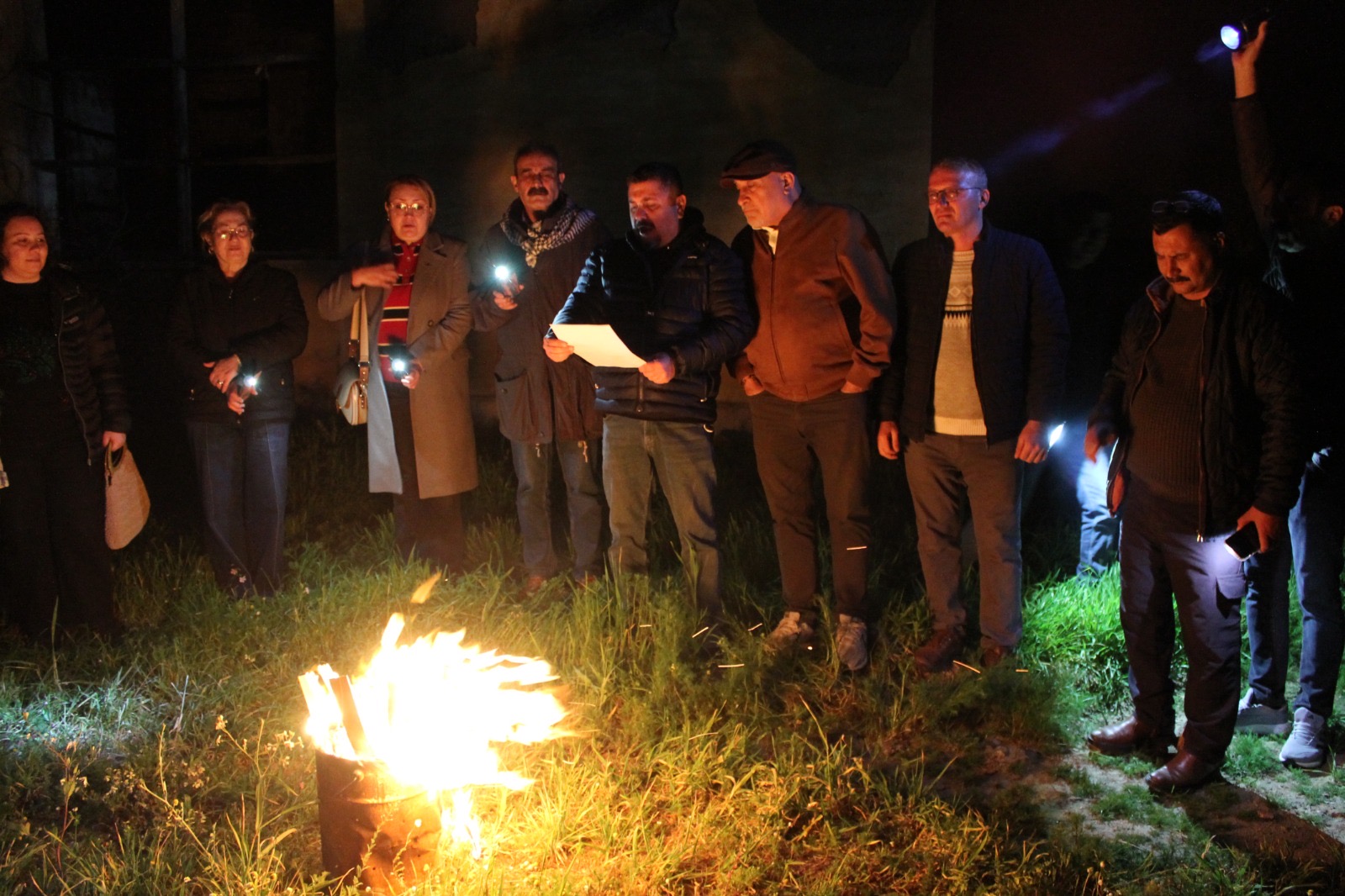 Atatürkçü Düşünce Derneği (ADD) Alaşehir Şubesi tarafından gerçekleştirilen anma programı, depremin en fazla etkilediği bölgelerden biri olan Tepeköy’de yapıldı. “Eski Tepeköy” olarak bilinen ve yıkımın izlerini hâlâ taşıyan alanda, ayakta kalan ilkokulun önünde yakılan ateş etrafında toplanan katılımcılar, farkındalık yaratmak amacıyla el fenerleri ve gaz lambalarıyla programa katılarak hayatını kaybeden vatandaşları andı.