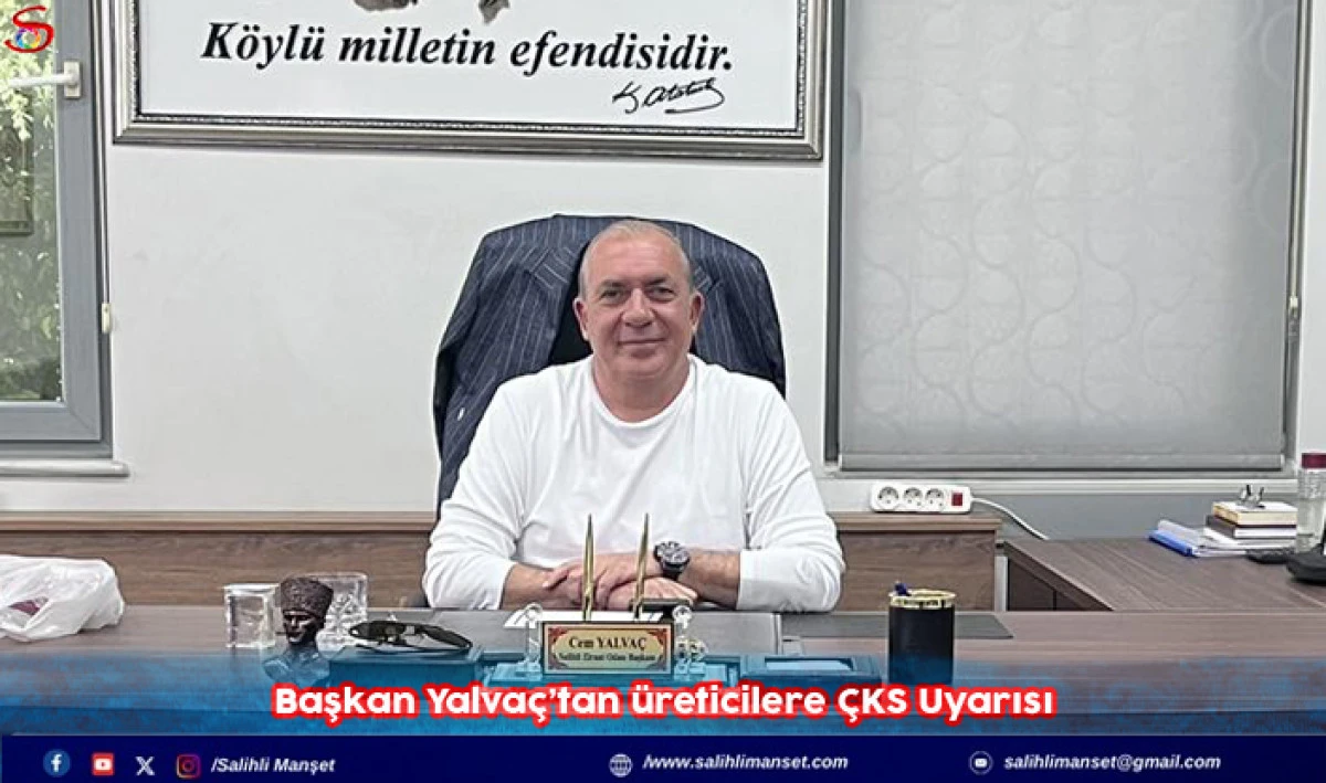 Salihli Ziraat Odası Başkanı Cem Yalvaç, 2026 üretim yılı Çiftçi Kayıt Sistemi (ÇKS) başvurularının 31 Aralık'ta sona ereceğini bildirerek, üreticilere "İşlemlerinizi son güne bırakmayın." çağrısında bulundu. Üreticileri uyaran Yalvaç, 1 Eylül'de başlayan başvuru sürecinin 31 Aralık Çarşamba günü mesai bitiminde kesin olarak tamamlanacağını belirtti.