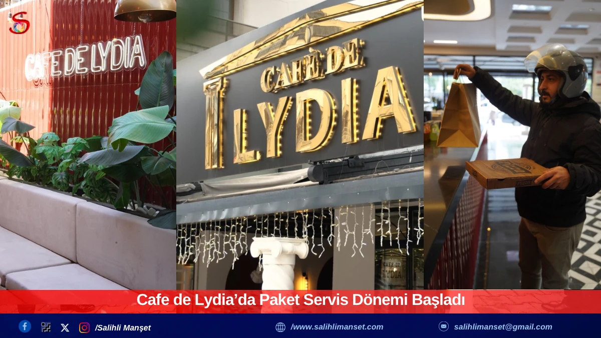 Manisa’nın Salihli ilçesinde Atatürk (Çınarlı) Caddesi üzerinde hizmet veren Cafe de Lydia, otantik tasarımı, zengin menüsü, tatlı, kahvaltı, yemek ve sıcak–soğuk içecek çeşitleriyle dikkat çeken konseptine şimdi paket servisi de ekledi.