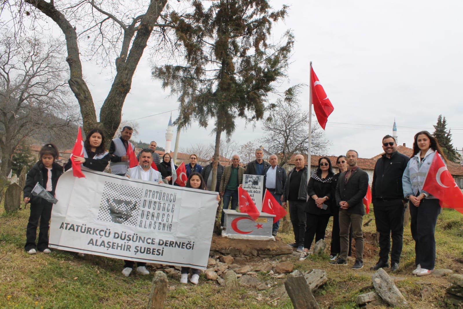 Atatürkçü Düşünce Derneği (ADD) Alaşehir Şubesi tarafından Manisa'nın Sarıgöl ilçesine bağlı Dindarlı Mahallesi’nde gerçekleştirilen anma programında, dernek üyeleri ellerinde Türk bayraklarıyla kabir başına gelerek hem anlamlı güne dikkat çekti hem de vefa örneği sergiledi.