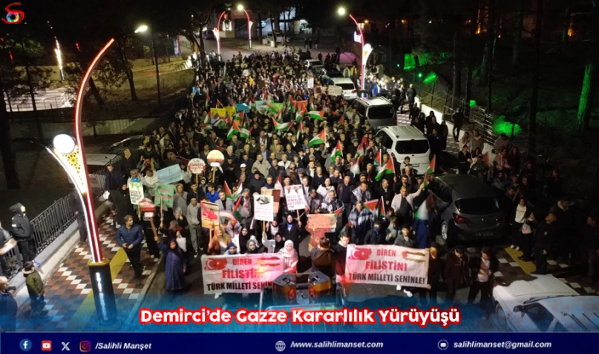 Demirci Belediyesi’nin de destek verdiği, İlçedeki sivil toplum kuruluşlarının öncülüğünde yapılan Gazze Kararlılık Yürüyüşü yatsı namazının ardından Prestij Caddesi Sultan Abdülhamid Han Camii önünden başladı.