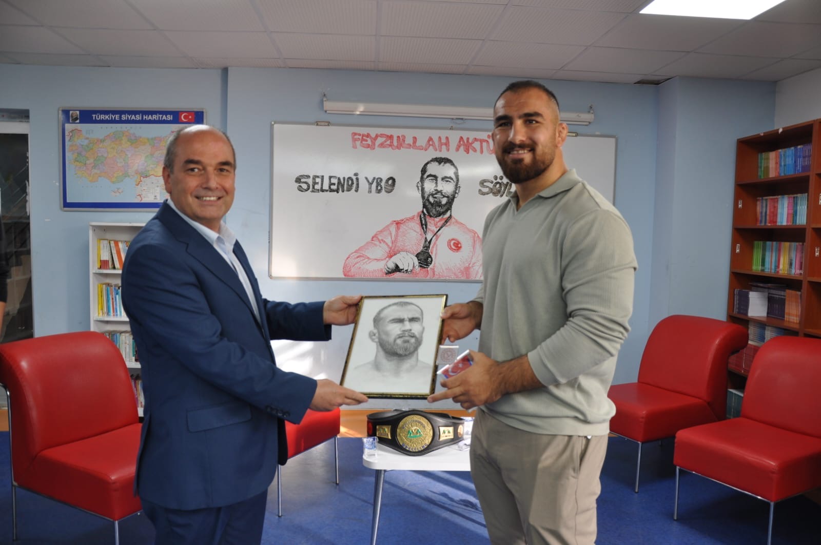 Dünya Şampiyonu milli güreşçi Feyzullah Aktürk, hem minder hem de yağlı güreşte elde ettiği başarılarının yanı sıra beden eğitimi öğretmeni olarak da görev yapıyor. Başarılı sporcu, Selendi Yatılı Bölge Okulu’nu (YBO) ziyaret ederek öğretmen ve öğrencilerle bir araya geldi.