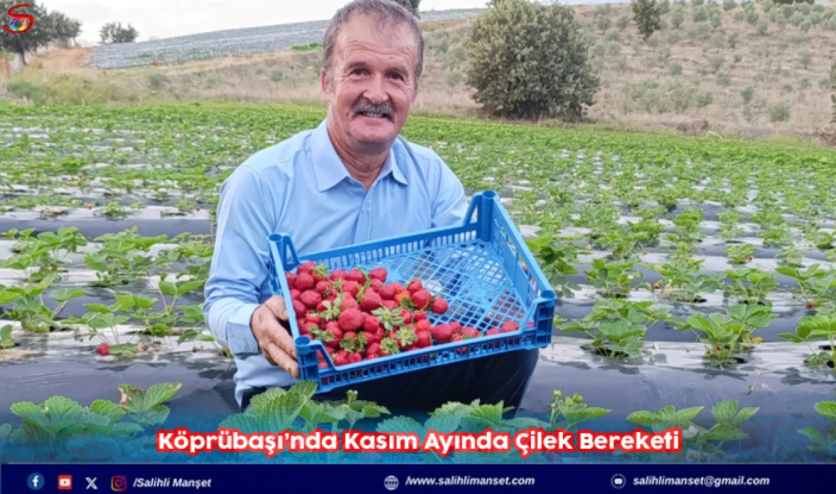 Bahar ve yaz aylarında Manisa’nın Köprübaşı ilçesinde çiftçilerin önemli geçim kaynağı olan çilek, kış aylarında da üreticinin yüzünü güldürüyor. Nisan ayında tarlada hasadı başlayan çilek, kasım ayının gelmesine rağmen hız kesmeden devam ediyor.