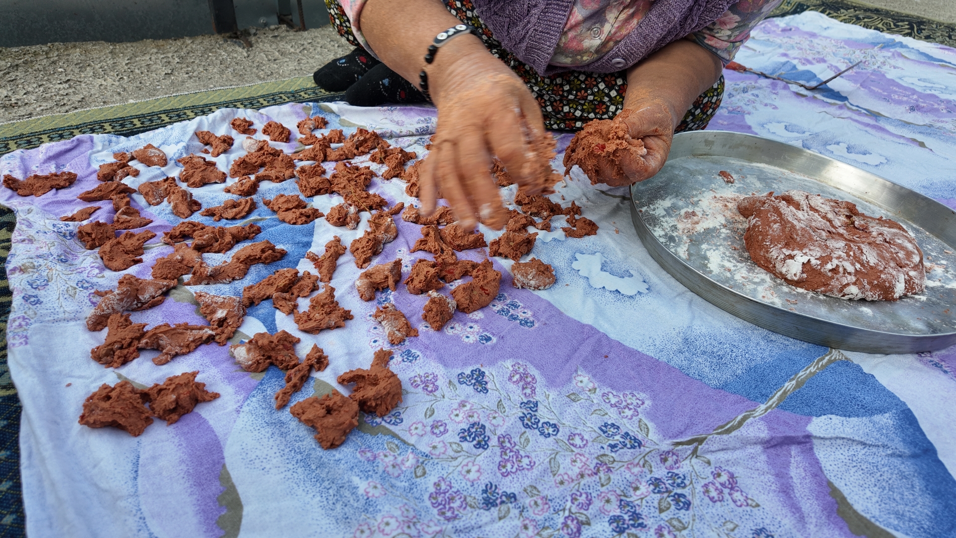 16’ıncı günün sonunda tarhana harcı parçalara bölünerek bez üstüne serilmesinin ardından kurutulmaya bırakılıyor.