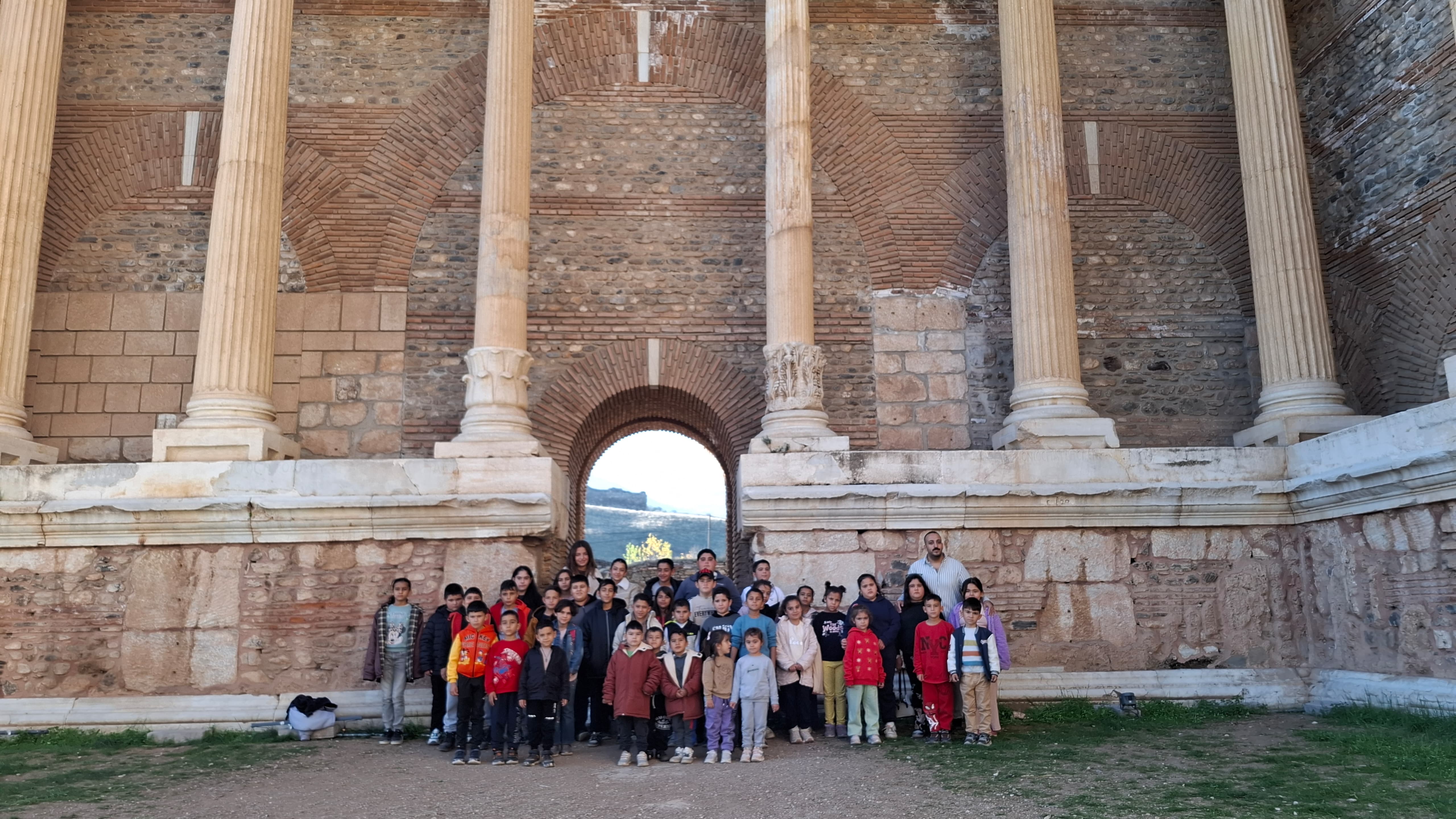 Programın ilk durağı, tarihi dokusuyla dikkat çeken Sardes Antik Kenti oldu. Burada anasınıfı öğrencileri “çocuk hakları”, veliler “kadın hakları”, ilkokul ve ortaokul öğrencileri ise “insan hakları” temalı hazırladıkları çalışmalarla önemli mesajlar verdi.