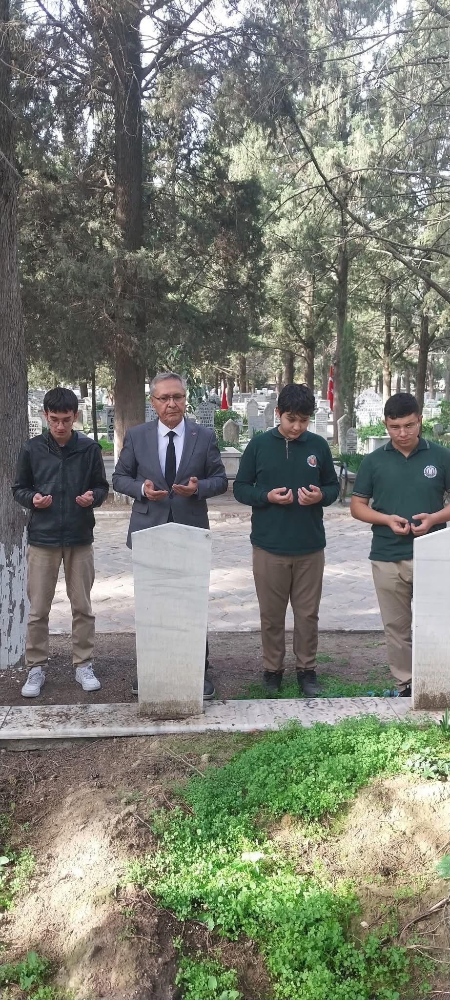 İlçe Milli Eğitim Müdürü Mahmut Yenen, Şube Müdürü Hasan Karakuş, kurum yöneticileri ve öğrencilerle birlikte Asri Mezarlık’ta ebediyete irtihal eden öğretmenlerin kabirlerini ziyaret etti.