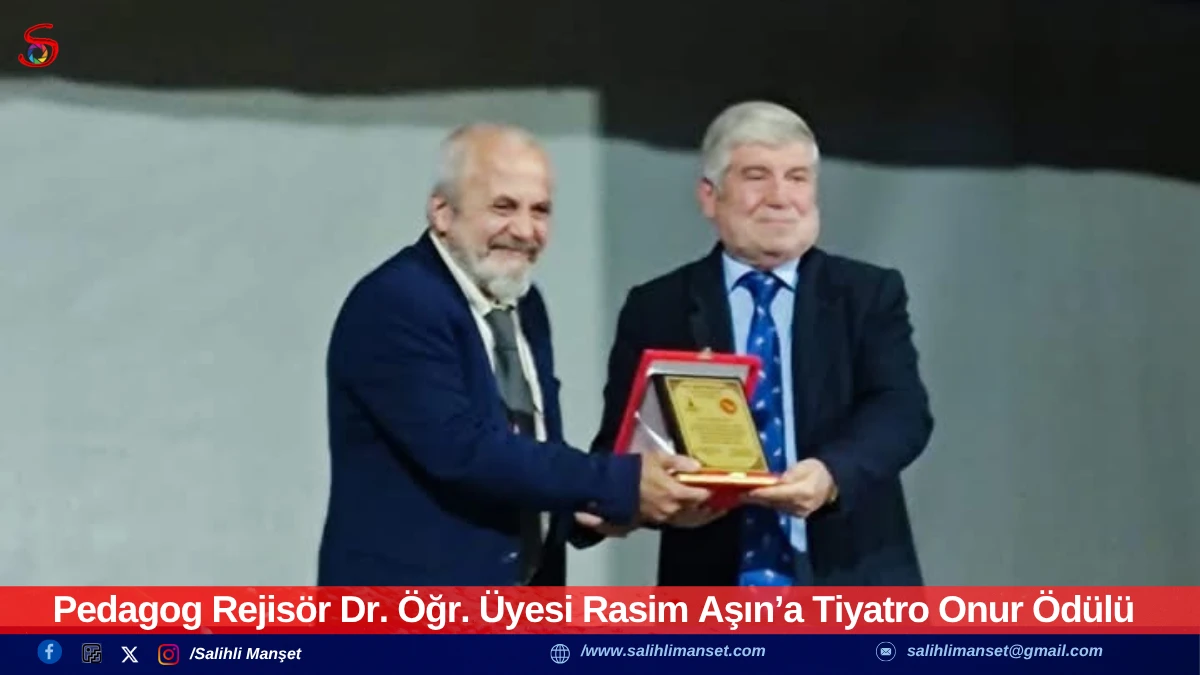 Salihli’de tiyatro alanında yürüttüğü çalışmalarla tanınan Pedagog Rejisör Dr. Öğr. Üyesi Rasim Aşın, 7. İzmir Uluslararası Aktivist Sanatçılar Birliği “Amazonlar ve Titanlar Sanat Ödülleri” kapsamında Tiyatro Onur Ödülü’ne layık görüldü.