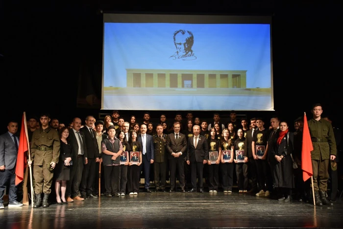 10 Kasım Atatürk’ü Anma Etkinlikleri kapsamında Zafer Keskiner Tiyatro Salonu’nda düzenlenen program; saygı duruşu ve İstiklal Marşı’nın okunmasıyla devam etti.