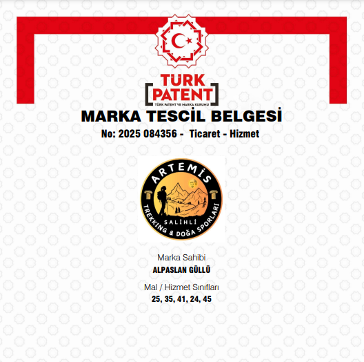 2025/084356 tescil numaralı belge ile "Artemis" ibaresi; gezi, doğa yürüyüşü ve spor etkinlikleri organizasyonunun yanı sıra; forma, tişört, mont, şapka gibi tekstil ürünleri ile pankart, afiş ve bayrak kullanımı gibi birçok alanda Alpaslan Güllü adına münhasır haklarla koruma altına alındı. Bu tescille birlikte, özellikle Salihli ve çevresinde "Artemis" ismini kullanarak doğa sporları yürüyüş organizasyonu yapmak veya bu ismi taşıyan ürünler bastırmak tamamen yasal izne tabi hale geldi.