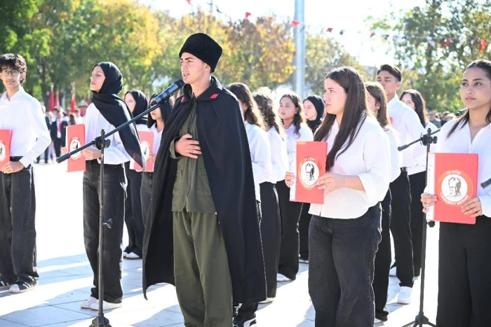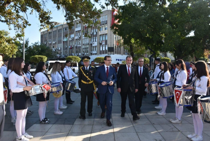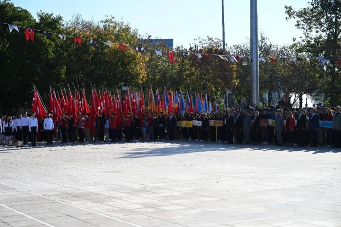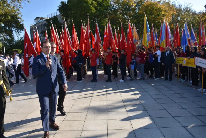 Günün anlam ve önemini belirten konuşmayı yapan İlçe Kaymakamı Ali Güldoğan, "Bizler, kahramanlarımızın emaneti olan bu aziz vatan toprağını ve şanlı bayrağımızı daima korumayı ve geleceği inşa edecek nesillere cumhuriyetinin değerlerini ve Atatürk’ün ideallerini aktarmaya ve bu emaneti korumaya ve yüceltmeye kararlıyız. Bugün bir kez daha yeniden Yaşasın Cumhuriyet diyoruz." dedi.