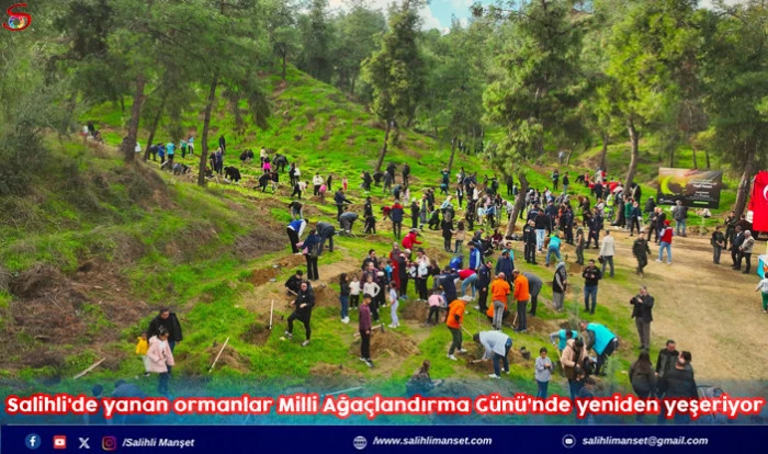 11 Kasım Milli Ağaçlandırma Günü’nde, "Yeşil Vatan Seferberliği" temasıyla Salihli'de yaz aylarında yangında küle dönen ormanlık alanda 600 fidan Öğrenciler, aileler ve protokol üyelerinin elleriyle toprakla buluştu.