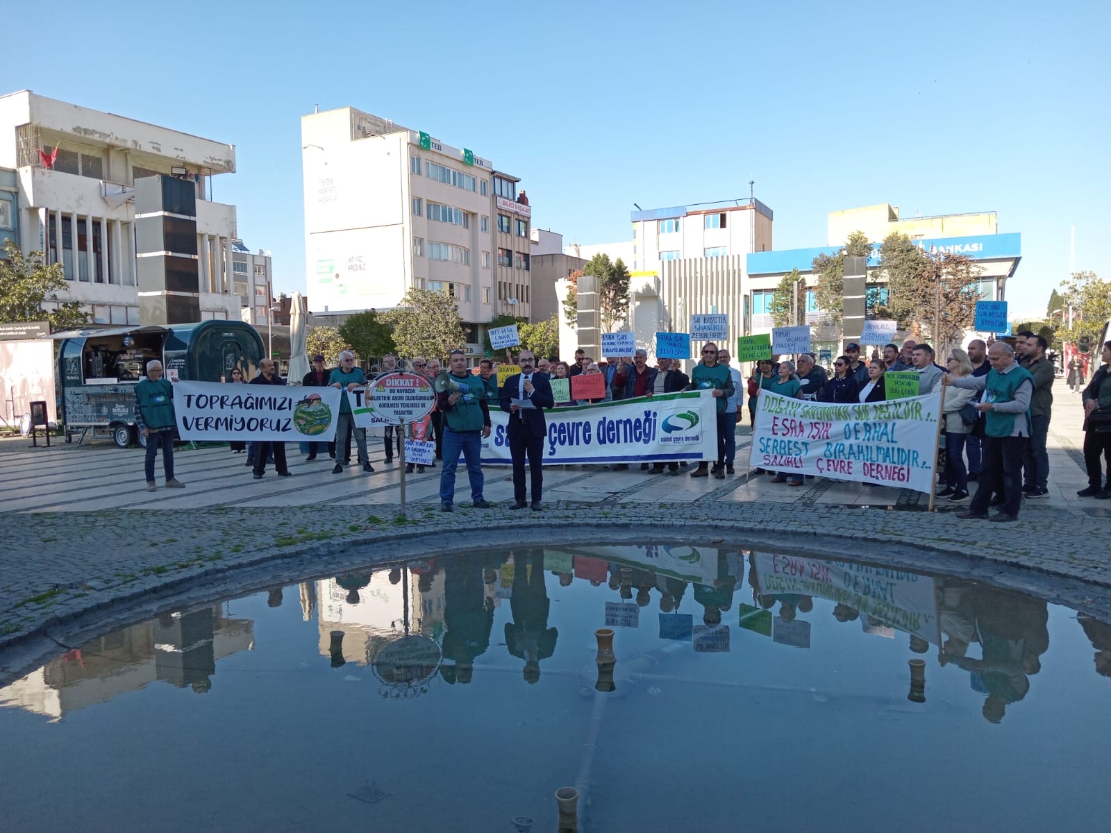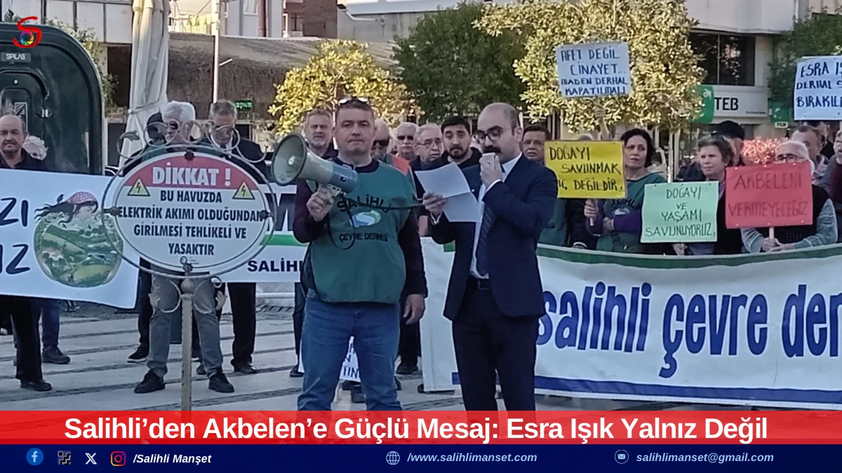 Salihli Çevre Derneği Başkanı Erdem Durmaz, yönetim kurulu üyeleri ve çok sayıda doğa gönüllüsünün katılımıyla Milli Birlik ve Demokrasi Meydanı’nda gerçekleştirilen basın açıklamasında, katılımcılar sık sık “Esra Işık yalnız değildir”, “Esra Işık onurumuzdur”, “Gözaltılar, tutuklamalar, baskılar bizi yıldıramaz”, “Limak elini Akbelen’den çek” ve “Doğaya, ormana, yeryüzüne özgürlük” sloganları attı.