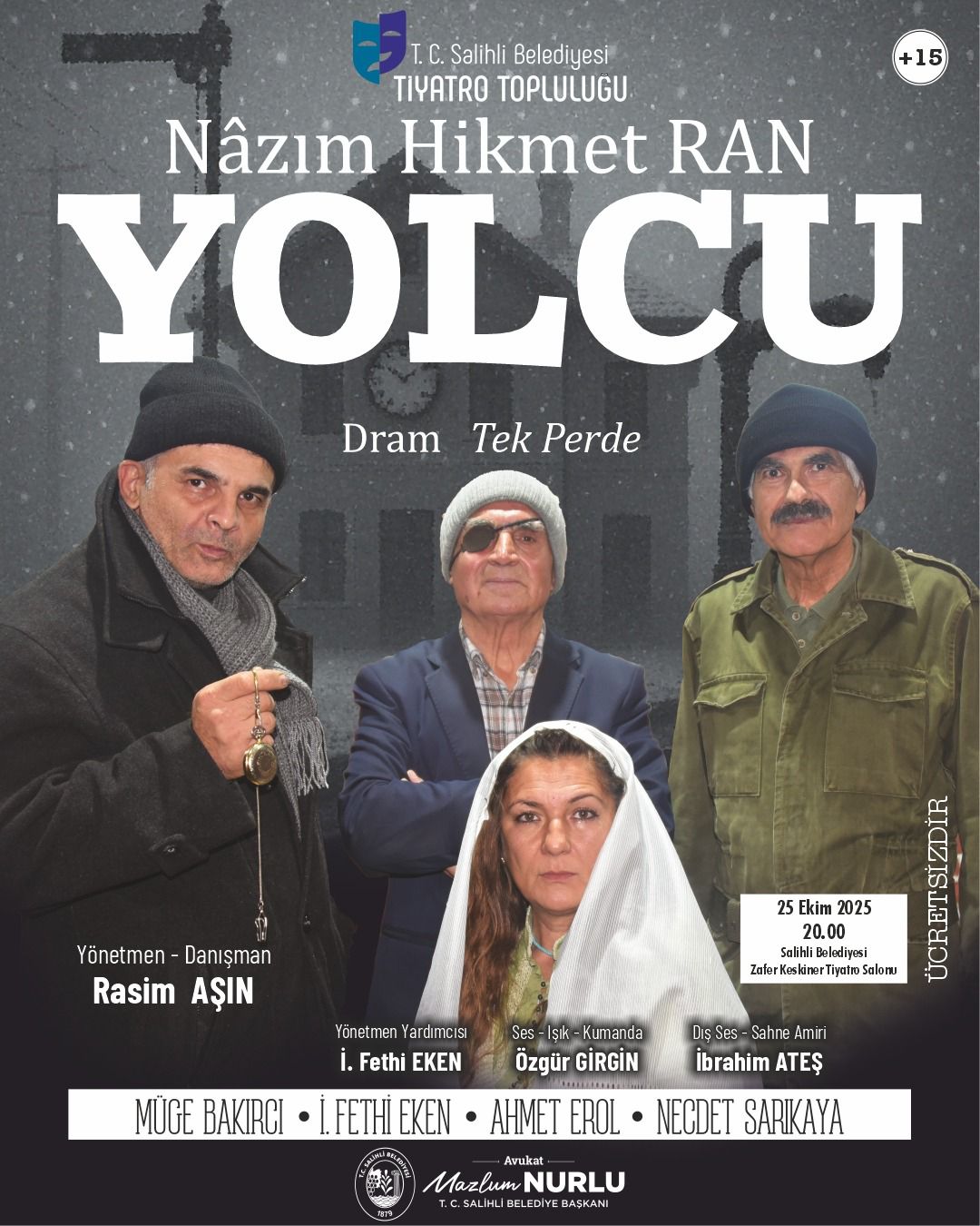 Salihli Belediyesi tiyatro topluluğu tarafından hazırlanan Nazım Hikmet’in kaleme aldığı ‘Yolcu’ eseri Salihli'de seyircilerle buluşacak.